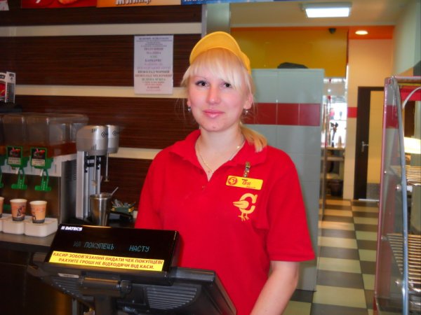 Ольга, официант ресторана «Чикен-Хат»: я работаю здесь уже не первый день. Жалоб от людей, что из-за машин невозможно пройти, не слышала.