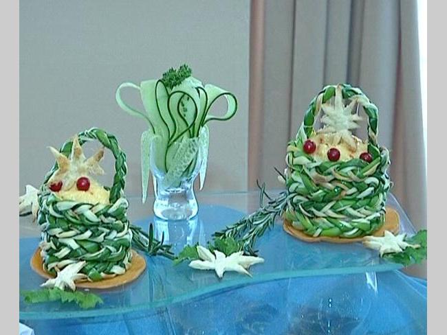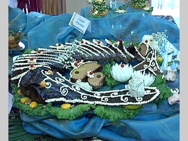 Очі розбігалися від різноманіття страв, і кожна з них мала неперевершенний вигляд: «Качка святкова», свиняча нога «Чоловіча втіха», галушки полтавські, рулетики «Захват», осетр фарширований «Символ надії», «Форель на снігу», ребро по-королівськи. Всю продукцію було оформлено майстерно та представлено у виді тематичних столів із відповідною сервіровкою. Виділявся серед демонстраційних столів полтавський, його тематика – «Підготовка до Євро-2012». Кухарі з Чернівців привезли з собою та виставили на дегустацію справжній буковинський самогон, а конкурсантка з Черкащини привезла свою рибу (вислонісом називається). Каже, що вона у них особлива, адже такої риби в жодній області немає, вирощується вона в Жашківському районі і має особливий смак. А учасниця конкурсу з Чернігова Наталія Сімак поділилася з нами деякими секретами. Вона каже, що треба готувати з любов’ю і усмішкою та вкладати в страву всю душу – тоді вона буде дуже смачною.