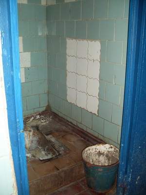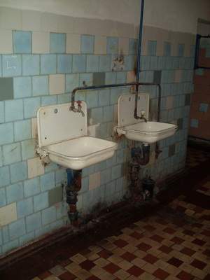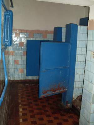 Ми відвідали більшість із громадських гігієнічних закладів. Усі підземні туалети приблизно одного часу будівництва – 60-х років. На жаль, нам не пощастило зустрітися із кимось із відвідувачів вбиралень. Але зафіксувати у пам’яті антураж вдалося. Сині металеві двері, на яких – написи «народних літописців». Інтер’єр скрізь типовий – старі умивальники, іржаві труби. Про мило та рушники взагалі мова не йде. Радіатори теплі і вода є, у деяких навіть цілодобово капає (це про економію). Але в підземних біль-менш чисто, відчувається запах хлорки.