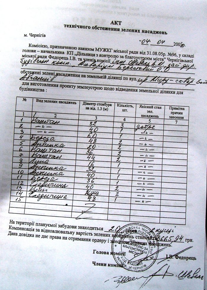 Акт технического обследования зеленых насаждений