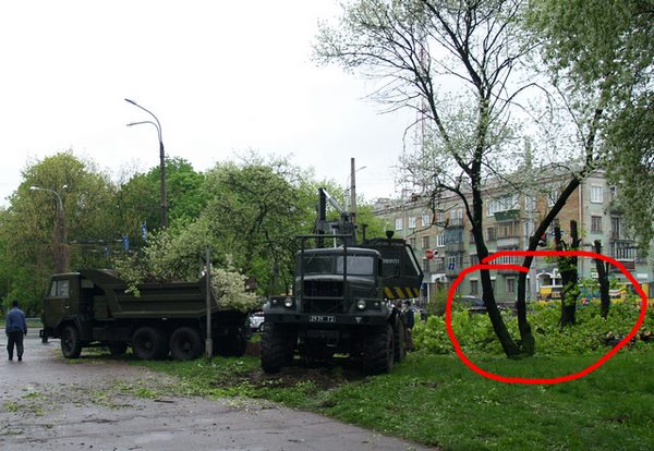 Сегодня, 29 апреля, с самого утра жители Чернигова с удивлением наблюдали, как в сквере Воинов-Афганцев, (в районе «Мегацентра») бригада в оранжевых жилетах, вооруженная бензопилами валила многолетние деревья. Разрешение на вырубку было подписано мером города. С сегодняшнего дня любимое место отдыха всех черниговцев превратилось в строительную площадку.