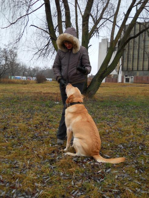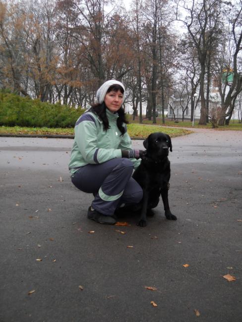 Анна и лабрадор Чаррис: Чаррису 4 года. Купили его в одном из Харьковских питомников в два месяца. Заплатили 300$. Чаррис хоть и добряк, но с характером. Спокойно уживается со всеми домочадцами и даже с котом. Все документы на собаку есть, но мы в выставках не участвуем – собака просто для дома. Специально с кинологом не занимались. У меня есть опыт обращения с собаками и я сама натаскала Чарриса на основные команды.
