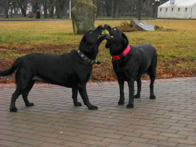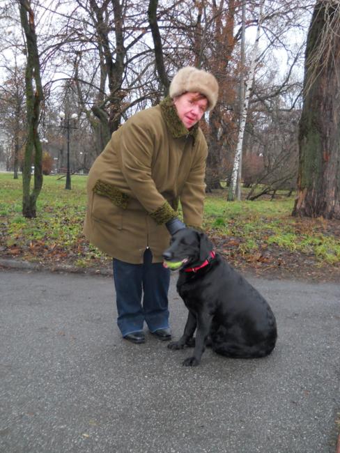 Виктория и лабрадор Лаки: Лаки – девочка, ей 5 лет. Все документы в порядке. Купили ее в Чернигове у заводчика, который занимается именно лабрадорами. Собака спокойная, дрессированная. Занимались с инструктором 2 месяца, платили по 25-30 гривен за тренировку. Живет с нами в квартире, уживается со всеми членами семьи. Проблем с ней никаких. Она даже зря не гавкает. Ест почти то же, что и мы. В пищу добавляем и мясо. Во сколько она нам обходится, сказать не могу, но финансовых затруднений не испытываем. Лаки уже мама, у нее были щенки. Нескольких отдали, нескольких продали по 200 гривен. Мы члены КСУ.