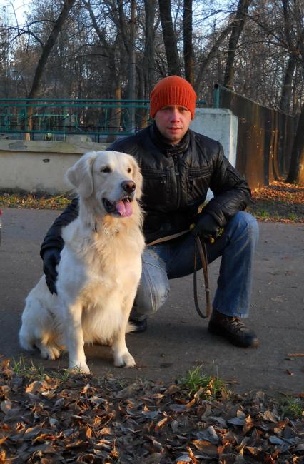 Тарас и золотистый ретривер Найк: Найку 4 года. Его подарили супруге. Какие-то основные документы на него есть. В клуб мы не ходим и с тренером по дрессировки не занимались. Основным командам: «Сидеть!», «Лежать!», «Ко мне!» – собаку обучили сами. Найк – добродушный, дружит со всеми и всех любит – и нас, и нашего кота, и наших знакомых. Неприхотлив, ест все подряд – каши, косточки. Корм не практикуем. Максимальные расходы на собаку – 500 гривен.