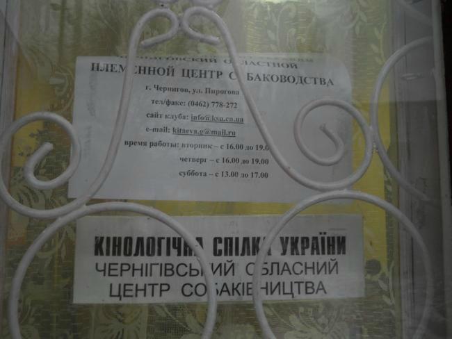 Черниговский Областной Племенной Центр находится по адресу ул. Пирогова, 15 (во дворе станции переливания крови). Время работы: вторник и четверг с 16 до 19.00. Суббота: с 13 до 17.00. Тел.: 778-272.