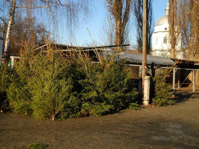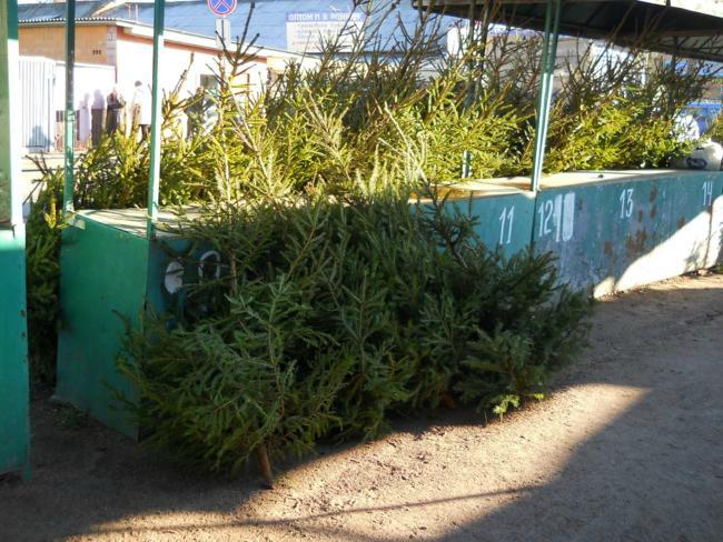 В понедельник, 19-го декабря, с обратной стороны Центрального рынка начали продавать живые елочки.