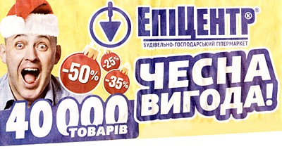 Компанія «Епіцентр К» вітає вас з Новим роком та Різдвом Христовим і напередодні свят хоче подарувати Вам можливість скористатися чесною вигодою, заощадити і придбати необхідні товари за унікально низькою ціною.