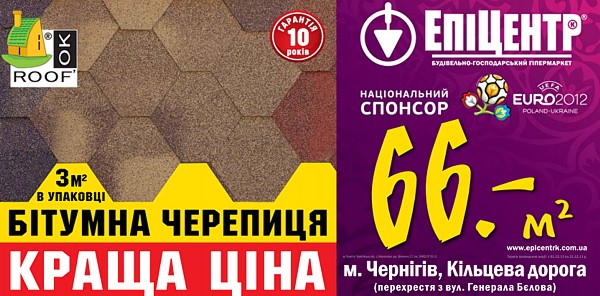 Бітумна черепиця, 3 м.кв. в упаковці – 66 грн./м.кв.