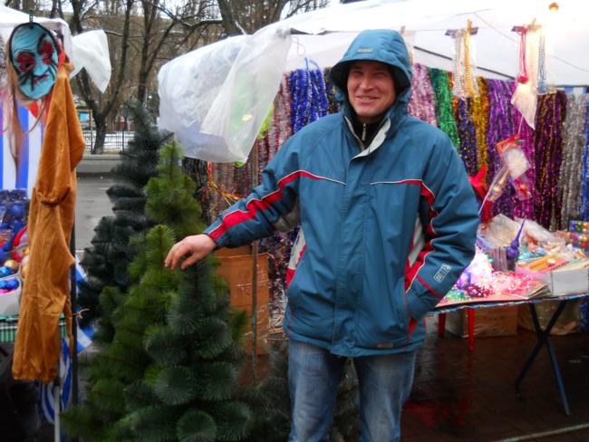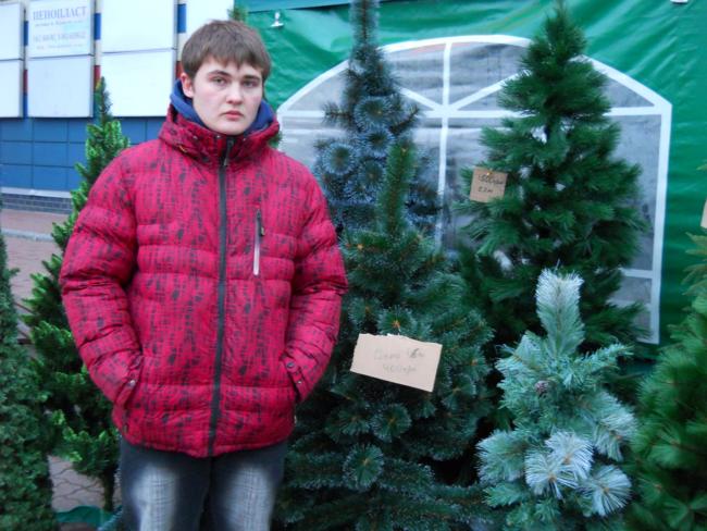 Сергей, продавец: у меня елки из Черновцов и Ивана-Франковска. Все с сертификатами. Не горят, не осыпаются (улыбается)