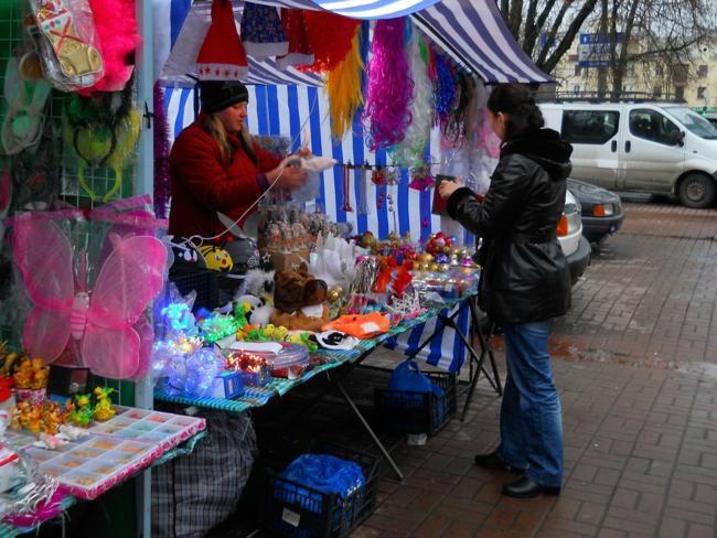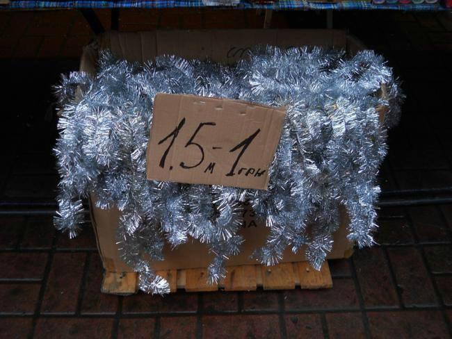 Самая дешевая вещь в палатке – 1 гривна (шарик), самая дорогая – 180 грн. (гирлянда).