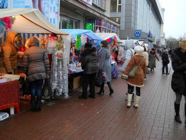 Елена Шевченко, продавец палатки: только что мужчина набрал всякой мелочевки на 250 гривен. Работаю здесь уже с 10-го декабря. Место хорошее, люди постоянно подходят, спрашивают. Если бы еще всегда и покупали (улыбается).