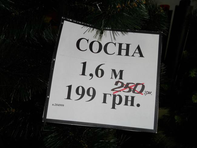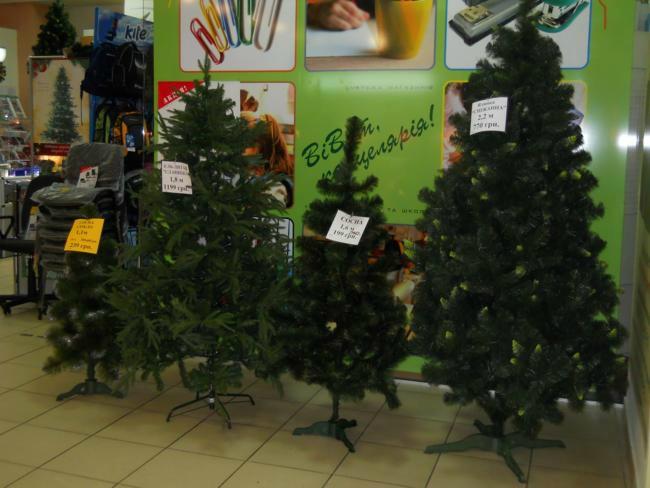 Цена искусственных елок тоже весьма разнообразна. Лично видел елочку 50 см. за 25 гривен и 2,5 м. за 1500.