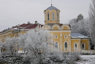 Церковь Михаила и Федора Черниговских была сооружена в стиле классицизма с элементами барокко. Во ІІ пол. этого же столетия после реконструкции храм приобрел псевдовизантийский внешний вид. Какие произошли изменения во внешнем виде церкви, хорошо видно при сравнении старинных открыток с изображениями храма. На более поздней открытке уже присутствуют три полукруглых завершения фасадов церкви – закомары, над большими полуциркульными окнами появились новые оконца, маленькие и круглые – люкарны, барабан купола стал крупнее и массивнее, стены покрыл новый декор, перекликающийся с подобным на стенах корпусов семинарии – пилястры, завершающиеся ажурными белыми капителями коринфского ордера. Сейчас это действующий храм.
