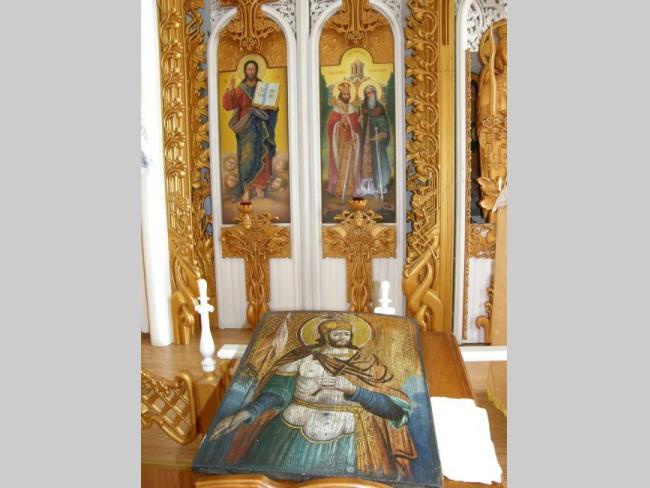 Главной же «изюминкой» храма является хоть и современный, но потрясающей красоты изысканный иконостас. Автор этого эксклюзивного произведения искусства - известный художник из Нежина Александр Кошель. Свыше 4-х лет воплощали его замысел нежинские мастера резьбы по дереву. Иконостас вырезан из липы и окрашен в два цвета: белый и золотистый (символы небесной чистоты, духовных ценностей и величия веры).