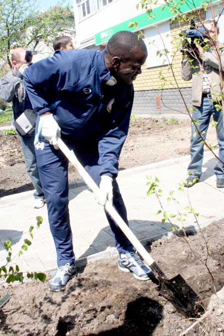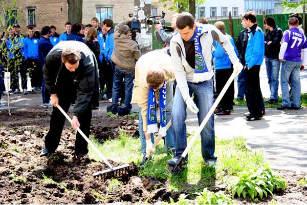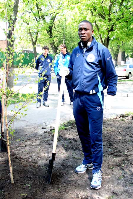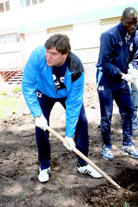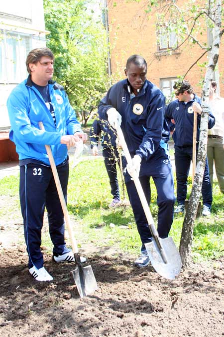Черниговские футболисты сажают деревья с банкирами (фоторепортаж)
