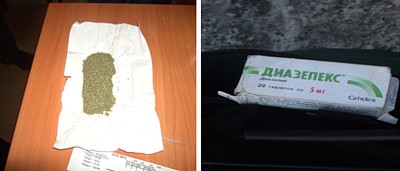 При проведенні подальшого огляду транспортного засобу та особистих речей пасажирів за допомогою службової собаки Лейс у двох громадян Республіки Молдова, серед особистих речей у валізах, були виявлені пігулки «Діазепекс» у кількості по 16 штук у кожного.