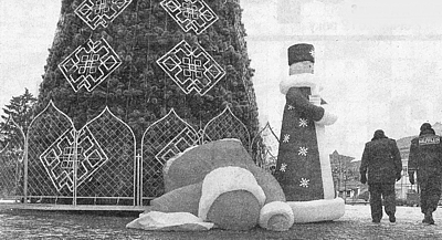 Та й Дід Мороз зі Снігуронькою були нові. Але нестійкі. Особливо дід: раз здувся і впав, другий. Здувався у прямому сенсі, бо ті фігури - надувні, що вельми символічно...