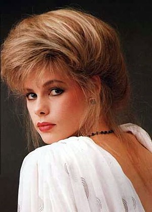 Причёска напоминала взорвавшийся стог сена. Преобладали мелированные пряди, химическая завивка и высокий начёс, в том числе и чёлки.