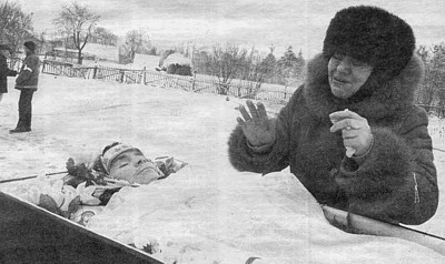 35-летнюю Людмилу Черевко хоронили в Киенке 16 января. Прямо из морга ее привезли в церковь отпевать. У гроба безутешно рыдала сестра Елена Тестенникова. Она приговаривала: «Зачем вы все меня покинули — отец, Саша, теперь вот ты, сестричка? Я больше тебя никогда не увижу, не услышу твой голос. Я ж тебя просила, слушайся меня, Людочка, сестричка родная моя...» Елена нежно гладила холодные руки сестры. На лбу, носу, голове покойной виднелись шрамы и синяки, несмотря на то, что она была сильно загримирована.