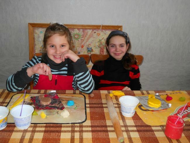 Наталья Боженок, мама: моя дочь Ярослава в кружке лепки. Они работают с соленым тестом. Очень довольна, что есть возможность, что бы ребенок чем-то занимался. Мы живем в районе Вала и сюда ехать не далеко и удобно. Инвентарь сегодня наш – мука, соль и фольга.