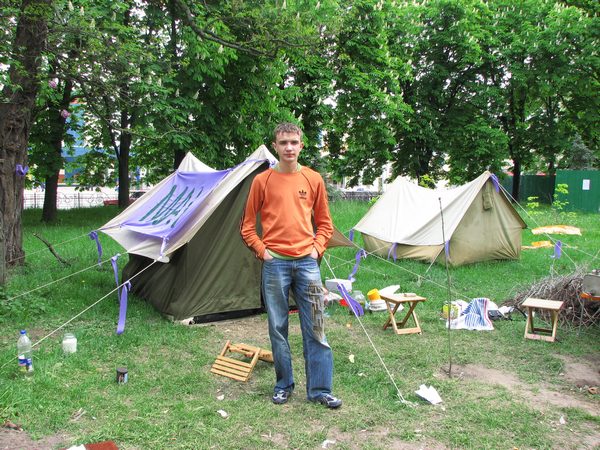К сожалению, в то время, когда мы подошли в городке было лишь три человека. Один из них беззаботно храпел в одной из палаток, другой – юноша по имени Роман согласился поговорить и сфотографироваться.