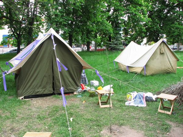 Мы решили взять небольшое интервью у жителей палаточного городка, который образовался в сквере, напротив Мегацентра. Напомним, что весь сыр бор разгорелся, из за начавшегося на территории парка строительства. Стройку приостановили, но палатки стоять остались, а многим жителям города интересно, как долго будет длиться эта мирная забастовка.