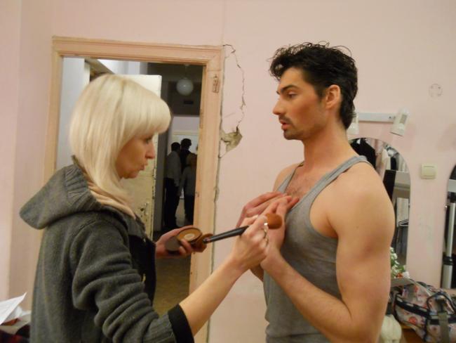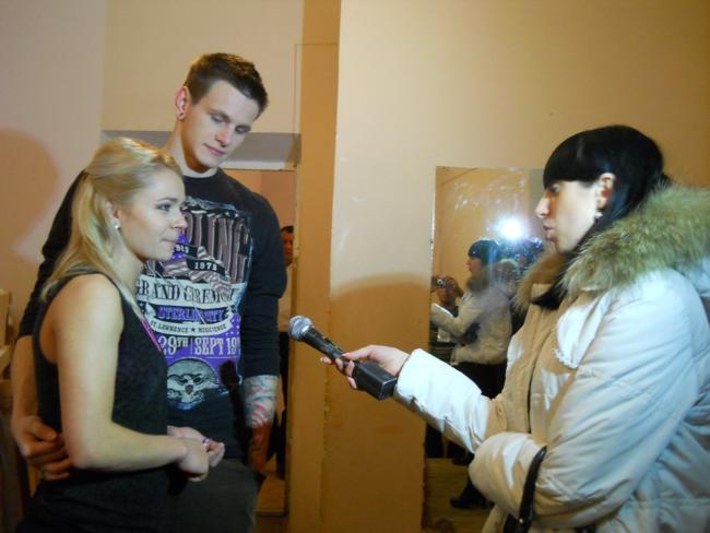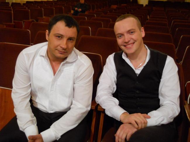 За полчаса до начала по журналистскому удостоверению прошел в филармонию и пообщался с некоторыми участниками и зрителями концерта. Пока танцевальные звездочки разминались на сцене, в курс событий меня ввели ведущий концерта Дмитрий Танкович и финалист шоу «Україна має таланти» – Валерий Юрченко.