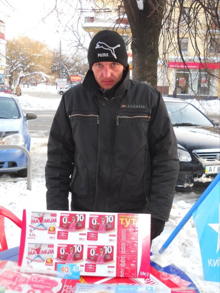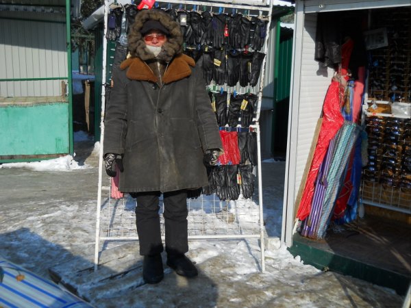 Василий, продавец пополнения мобильных телефонов: вышел на работу к 10 часам. Сколько было градусов, не интересовался. Оделся, как всегда, на мороз. У меня вещи с виду легкие, но все утепленное. Шапочка, куртка с меховой подстежкой, футболка и три свитера. Брюки утепленные. Зимние ботинки на два носка – обычные и шерстяные вязаные. Носки связаны тещей, поэтому греют особо! Стараюсь не стоять на месте, а двигаться – прыгать, приседать. Пью чай и кофе. Жаль, приходится бегать за ними к рынку и брать с собой все принадлежности торговли. И еще проблема – много питья нельзя, туалета рядом нет. Маленький плюс – небольшая торговля есть.