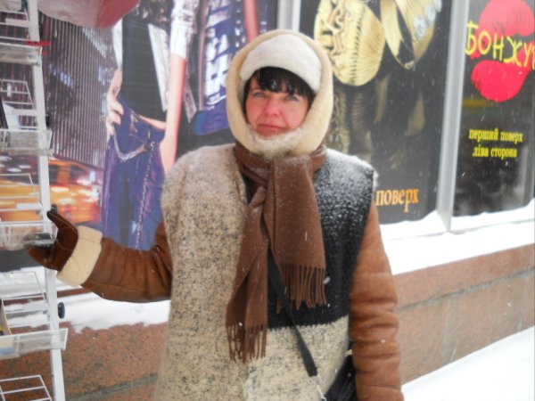 Нина Леонидовна, продавец в киоске: я выхожу на работу в любую погоду. Мороз – не исключение. Сейчас, знаю, почти 20 градусов. Переношу нормально. Греюсь чаем и кофе. Конечно, оделась, как надо! У меня шапка и капюшон. Под шубой и тулупом два свитера и футболки. Брюки спортивные утепленные. В валенках два теплых носка. Настроение хорошее, только, жаль, торговли нет.