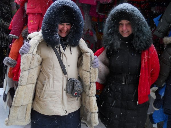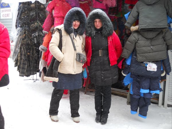 Валентина и Виктория, предприниматели: мы просто обязаны выходить в любую погоду – надо платить налоги, местовые, да и кушать надо... Стоим на морозе с 9.30. Стоим и думаем, когда эта пытка закончится? Чай стараемся не пить. После него хочется в туалет, а в такой одежде попробуй, сходи... Одеты почти одинаково: шапки с капюшоном, футболки, по два свитера, пуховики и сверху еще куртки. Под утепленными брюками по три пары колгот и сапоги на три носка.