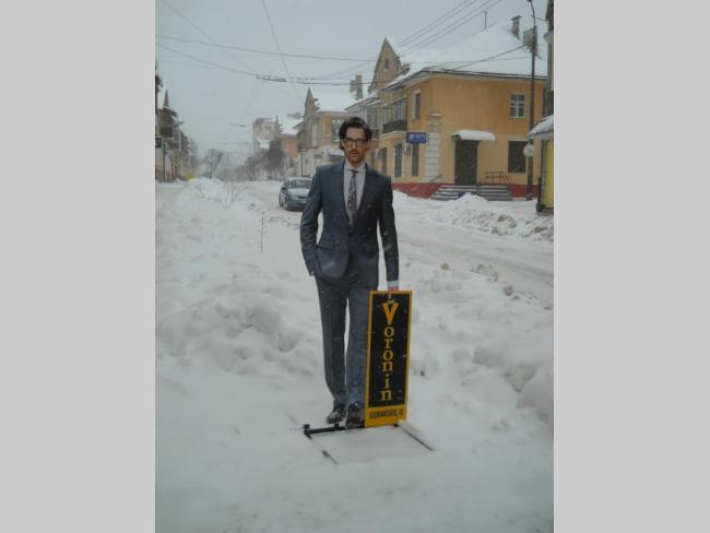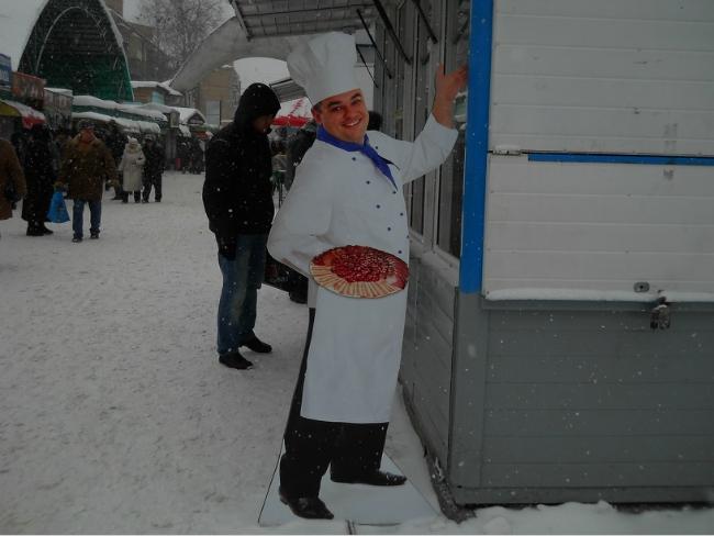 Двадцатиградусный мороз и начавшийся снегопад не заставил надеть на себя «сто одежек» только двух молодых мужчин. Одному из них, из команды модельера Михаила Воронина для полного комфорта хватило серого делового костюма. Другому, смуглолицему кавказцу из рыночной пиццерии – поварского белого халата.