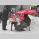 Александр, предприниматель: если бы не производственная необходимость, в мороз работать не пошел бы. Налоги платим каждый день и их надо отбивать. Стоять собираюсь до 14-ти часов. Греюсь чаем, уже выпил два стакана. Мои соседи успели выпить уже и по 4-5. Конечно, на морозе работать тяжелее, но помогает оптимизм и настроение. У меня зимняя шапка, капюшон, футболка, рубашка, свитер и зимняя куртка с теплой подкладкой. Зимние перчатки, теплое белье и утепленные брюки. Ботинки на два носка – простой и теплый.
