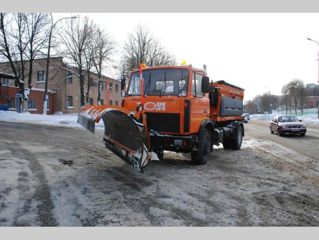 Чтобы получить это чудо снегоуборочной техники, на базе белорусского МАЗа на одесском заводе «Глобус» установили итальянское оборудование. Машина оснащена двумя двигателями: один - ходовой, другой - для оборудования. При уборке дорог (нормативная скорость от 1 до 18 км/ч) автомобиль съедает 30 л топлива на 100 км. Еще 7 л топлива за моточас съедает оборудование. Установленный в кабине водителя компьютер выбирает оптимальный режим посыпания дороги смесью в зависимости от скорости движения автомобиля. Песок наносится на ширину от 2 до 12 метров. При этом дозирование песка может