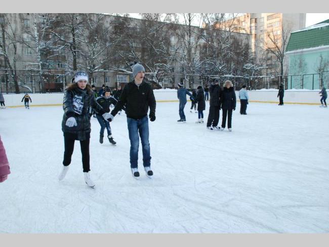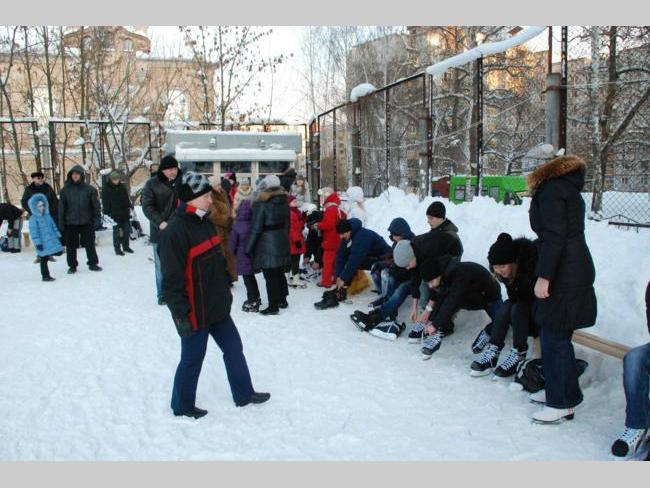 Одна из двух новых хоккейных коробок. Площадка очень большая, с освещением, музыкой. Но есть пара нюансов. Во-первых, на прошлых выходных, когда людей пришло много, не у всех посетителей получилось покататься: возникли проблемы с наличием прокатных коньков нужного размера. Вторая проблема, общая для всех школьных катков, - ограниченное время катания в будни, поскольку первая половина дня традиционно отдана школе.