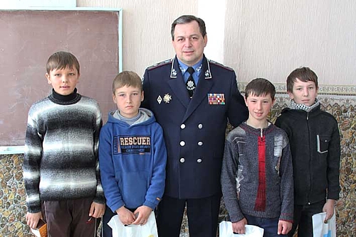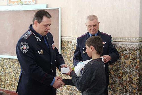 Олександр Михайлик висловив окрему подяку батькам та педагогам, які виховали справжніх громадян, готових прийти на допомогу ближньому і стати на захист справедливості. Генерал Михайлик вручив вихованцям школи міліцейську атрибутику, книги та поліграфічну продукцію. Головний міліціонер області поцікавився у педагогів чим би міліція могла допомогти школі, відповідь була дещо неочікуваною - директор попросив подарувати стільці. Справа в тому, що ті, які є, не оновлювалися з радянських часів, вчитель трудового виховання разом з учнями ремонтують їх як можуть, але ті часто просто розвалюються під невгамовними підлітками.
