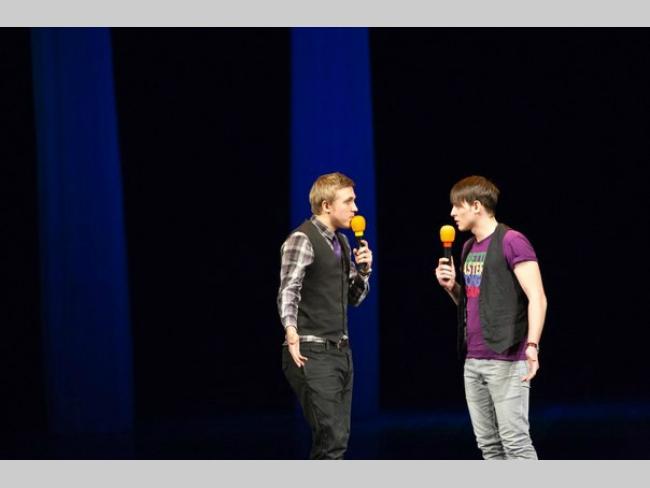 Уже одним своим появлением на сцене Роман Бабко и Алина Сиренко заставляли зал улыбаться и аплодировать. Немудрено, редактор одного из проекта на телеканале 1+1, Роман и журналистка Алина – известные черниговские КВНщики со своим особым неповторимым имиджем. Дуэт явно удался и, судя по всему, будет работать и на следующих проектах «Promotion Studio».