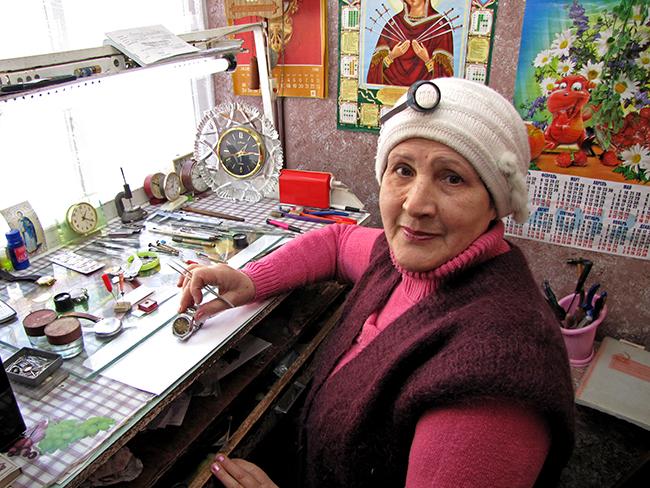 – В юности мечтала стать врачом, но не поступила в медицинский, и как пошла по этой стезе, так и работаю по сей день. Так что считайте – это и хобби, и призвание. Я уже на пенсии, но без работы не могу. Зимой в киоске холодно, были сильные морозы, осталась дома, а все равно тянет сюда. Как бы хорошо дома не было, а на работе я отдыхаю душой. Ремонтирую все виды часов: ручные, настенные, напольные, настольные, механические и кварцевые. Расценки у меня – недорогие, в пределах разумного. Я всегда иду на уступки заказчику, и еще никто не жаловался на меня.