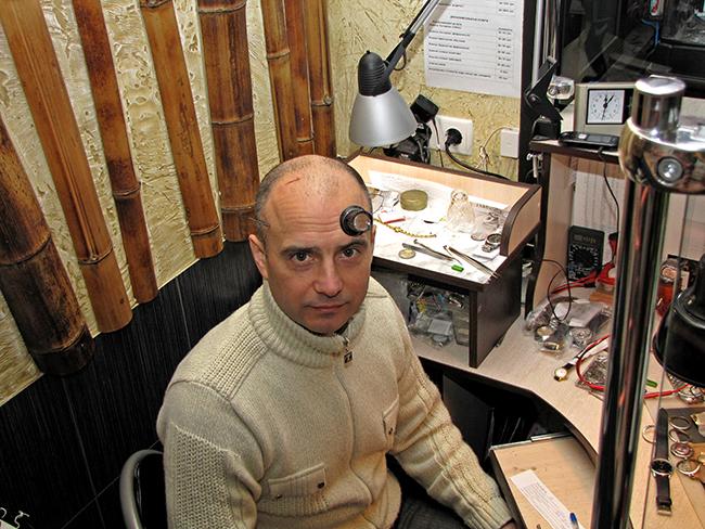 К тому времени уже было продано много часов, давали гарантию на часы, а соответственно надо было заниматься сервисным обслуживанием. Пришлось освоить профессию мастера по ремонту часов. Первым учителем был Александр Сенько, он и сегодня всегда помогает советом. Были интерес и желание, поэтому обучение прошло быстро и успешно. В 2005 году открылся магазин «Годинники-стиль», и с тех пор работаю здесь мастером по ремонту часов.