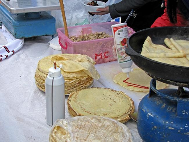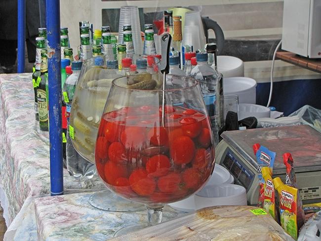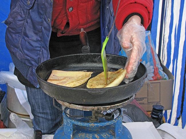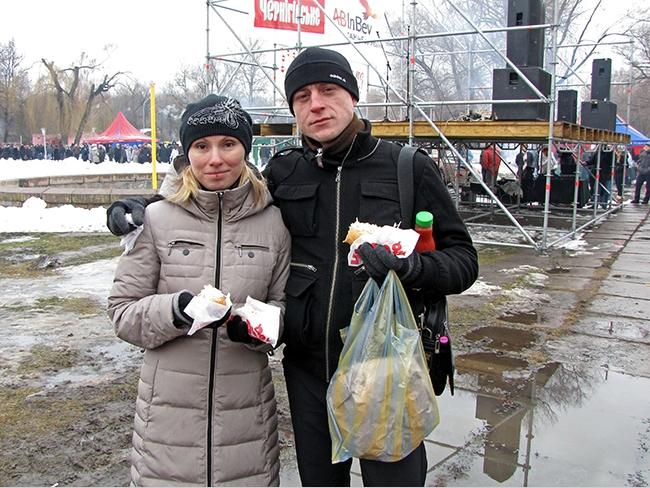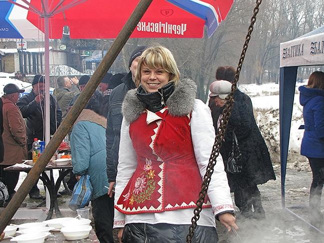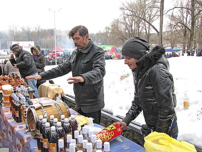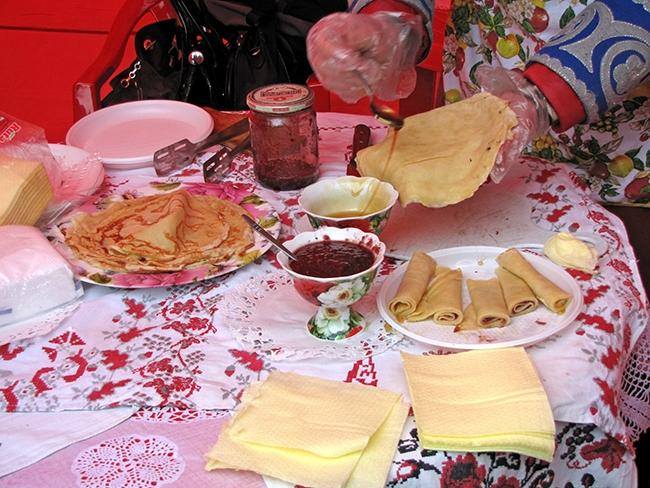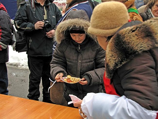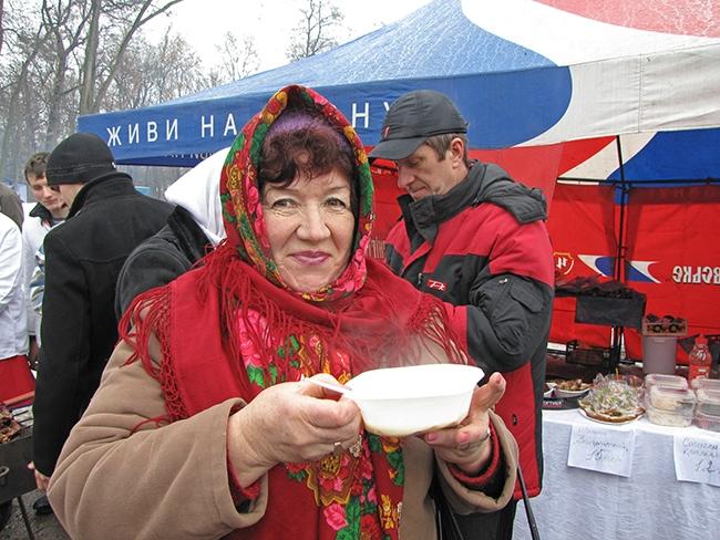 Под звуки задорных песен, справа и слева от сцены готовился традиционный кулеш, которым могли угоститься все желающие. В некоторых рекламных палатках, молодые девушки в национальных костюмах, угощали прохожих блинами, а на подходе к сцене можно было угоститься и стопкой отменной медовухи.