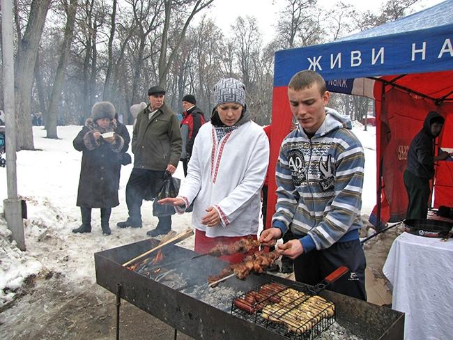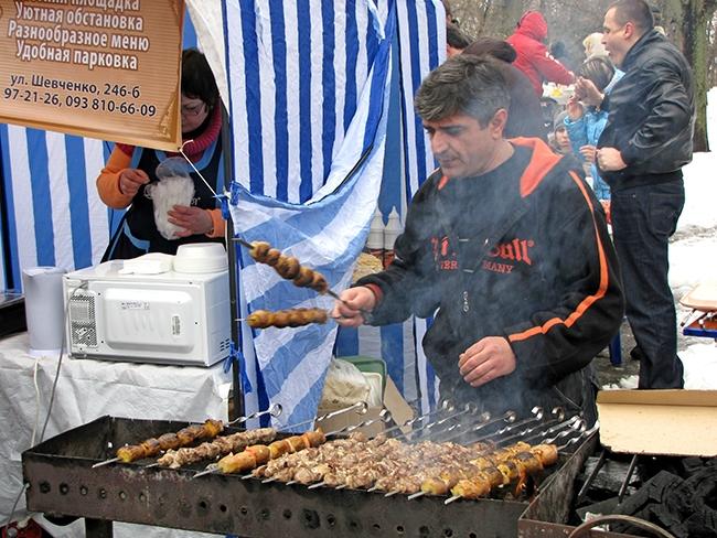 И, конечно, праздничная торговля блинами и оладьями, ароматными шашлыками и всевозможными бутербродами, горячими и горячительными напитками придала мероприятию неповторимый колорит.