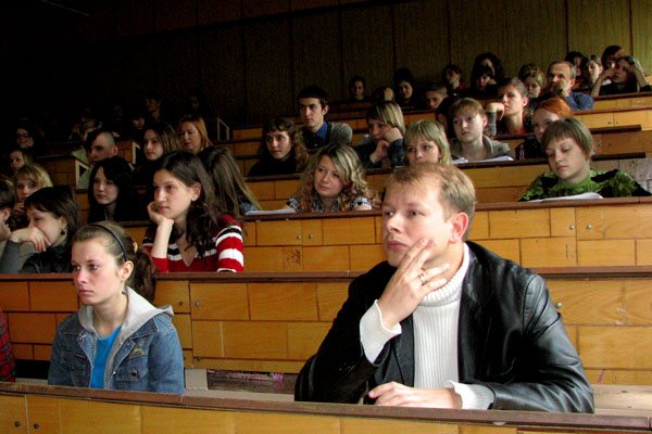 Не обов’язково всі знають, ви якось перебільшуєте, мені здається. Ви занадто гарної думки про українських студентів. Нажаль з них дуже мало читають, попри те що більшість читачів сучасної літератури це молодіжна аудиторія, це не означає що всі студенти читають українську літературу. За цими виступами можна побачити, що люди які приходять вони не всі розуміють куди вони приходять, і що вони бачать. Дехто приходить тому що йдуть друзі, дехто зацікавлюється рекламою. Ми домовляємось щоб не приводили насильно, але так чи інакше приходять і ті хто не знав. Важко знайти незайману цільову аудиторію. То тоді треба їздити по заводах, фабриках це до речі гарна ідея. Але наразі це важко здійснити.