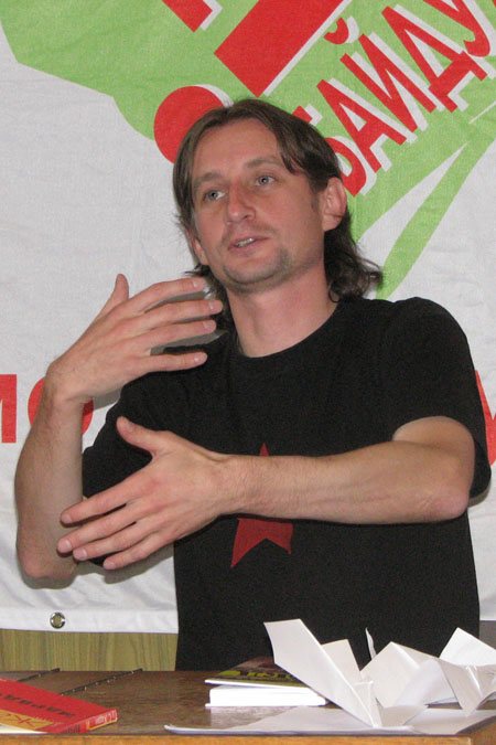 – Ось минулого року робили такий собі всеукраїнський флешмоб, називалося це акція «Українського партизанського мерчандайзингу», в якій взяло участь десь 17 міст України. В один день, це було десь в листопаді, це було напередодні річниці жовтневої революції, в один той самий час, о 15.00 до центральних книгарень міст заходили групи людей і переставляли примірники української літератури, які як правило знаходяться десь на задвірках на перші полиці. І вкладали в них такі аркуші з написом «Я хочу бачити цю книжку» на центральній полиці». Вся акція координувалась через Інтернет, через ЖЖ-юзерів. Важко сказати, який це дало результат, але ось наприклад, в Харкові ситуація в з українською книгою змінилася дещо на краще і вітчизняна література займає достойне місце.