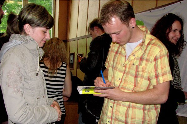 – Скажімо Тарас долучився до нас лише після вчорашньої поїздки, і я не скажу що всі хто приходить про все повинен знати. Ми возимо власні книжки. Як свій літературний продукт. А продажі показують те, що люди які сюди приходять дійсно нас не читали. Продажі насправді йдуть дуже погано.