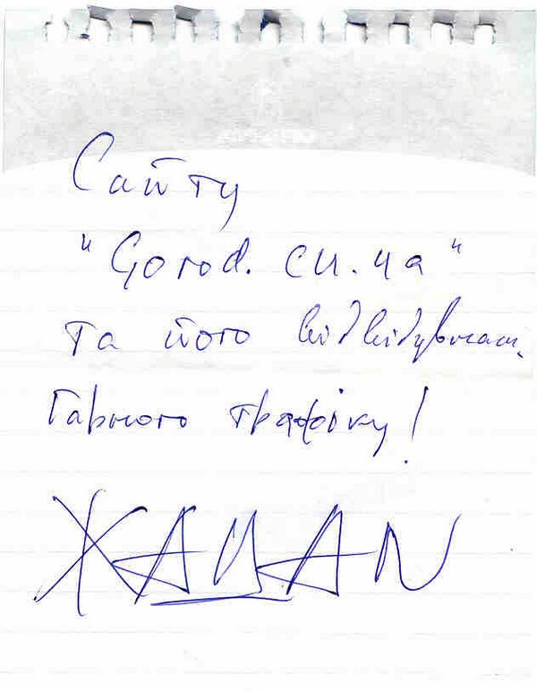 Автограф для сайту Gorod.cn.ua від Сергія Жадана