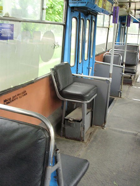 Салон троллейбуса - место кондуктора пустует