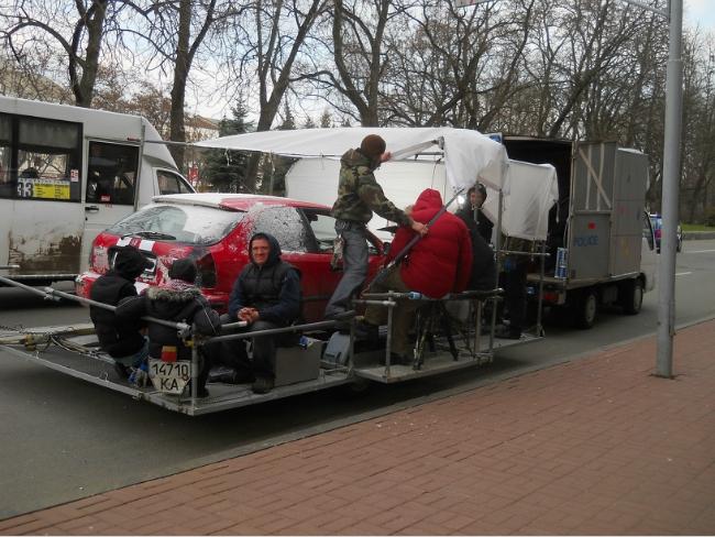 Пока бригада монтировала зиму, вокруг аллеи Героев нарезала круги кинооператорская сцепка заснеженных автомобилей, с сидящими внутри артистами во главе с Егором Бероевым.