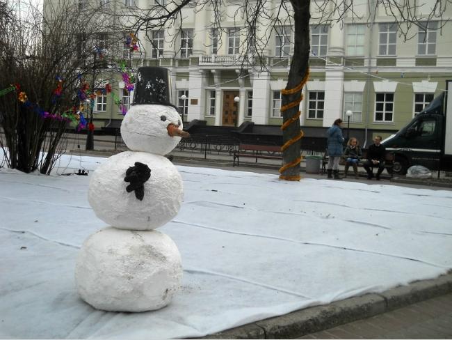 Как оказалось, чтобы 5-е апреля трансформировалось в снежный декабрь, надо не так уж и много: бригаду рабочих, «километр» белой ткани, снеговик и специальная снегообразующая, установка.