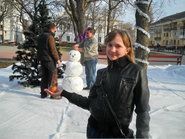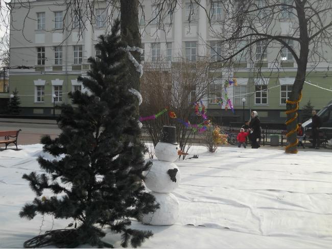 Ну, а горожане подвернувшийся случай, конечно, не упустили – фотосессия в апреле на фоне Новогодней елки и добродушного смешного снеговика – прекрасный повод для улыбки и главная тема дня.