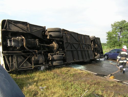 Зарегистрированный в Литве рейсовый автобус "Сетра" (Setra) направлялся по маршруту Вильнюс-Киев. В нем находились два водителя и 27 пассажиров. В результате ДТП один водитель с травмами госпитализирован