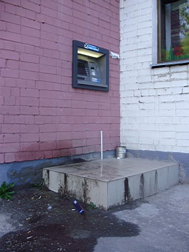 ...из-за чего на "пятачке" перед банкоматом постоянно грязь и лужи, а всем клиентам капает на голову вода из кондиционера